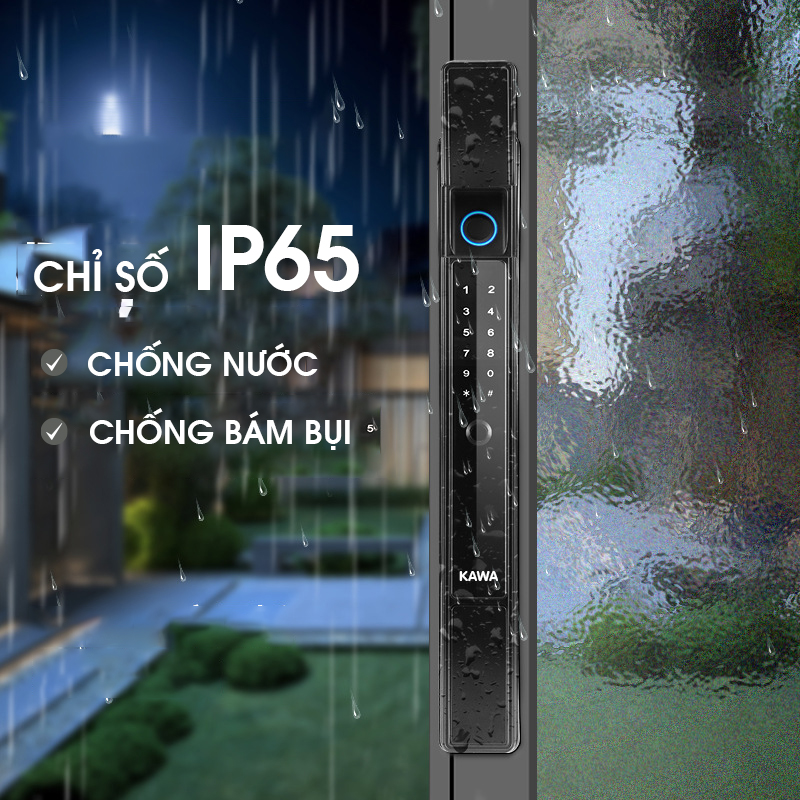 Model KAWA KN302 có chỉ số IP65 chống nước và chống bám bụi cao, có thể thoải mái lắp đặt ngoài trời. Khóa lắp đặt được trên hầu hết các hệ nhôm thông dụng.
