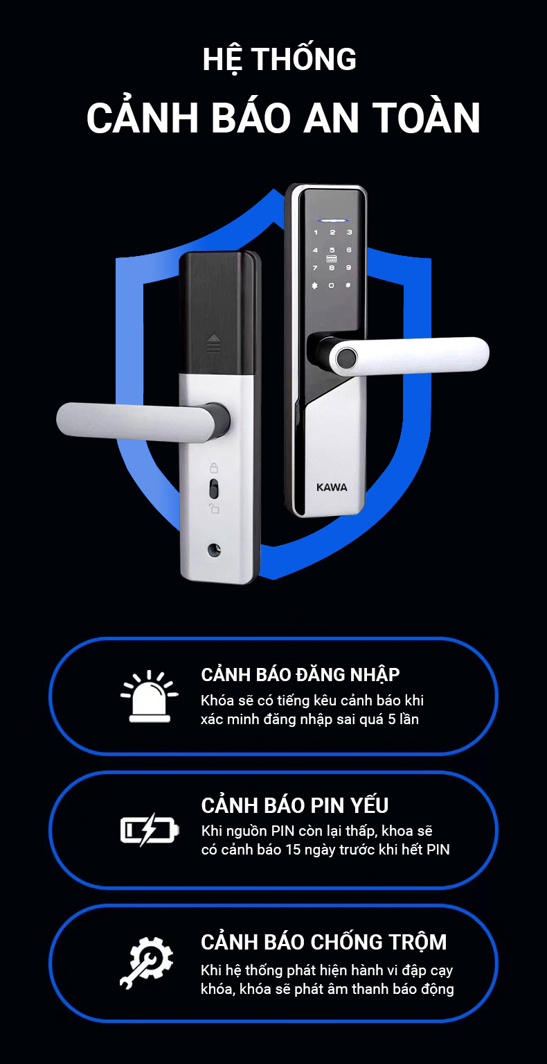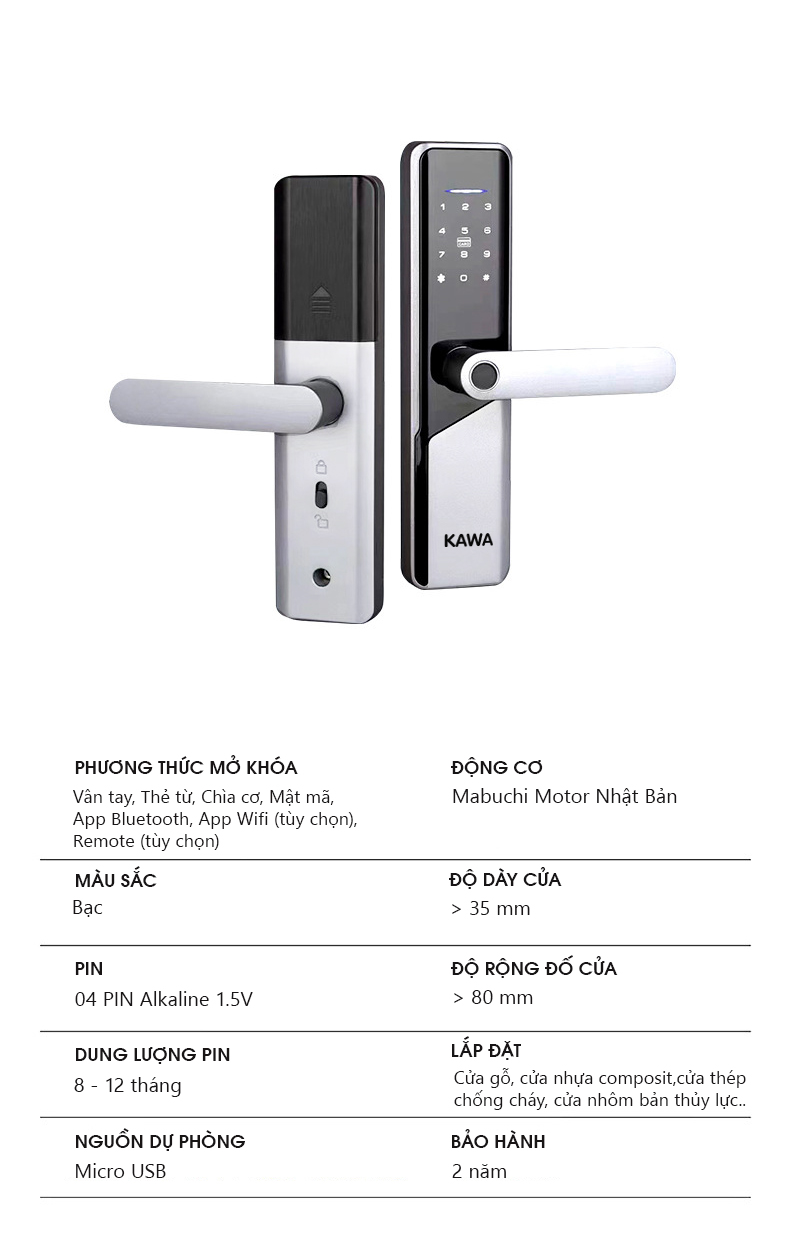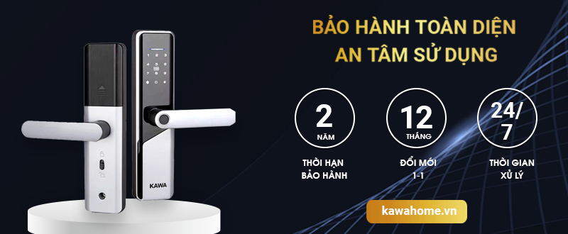 Mẫu khóa vân tay KAWA K208 được bảo hành chính hãng tại nhà 2 năm, đổi mới hoàn toàn 1-1 trong vòng 12 tháng nếu bị lỗi từ nhà sản xuất.