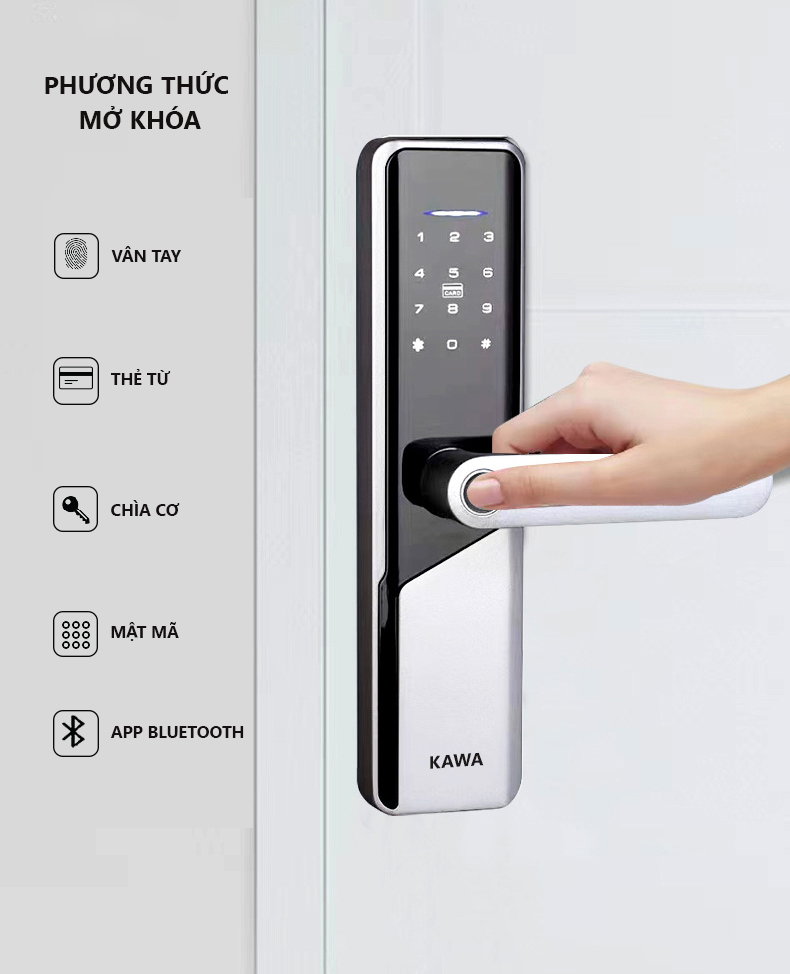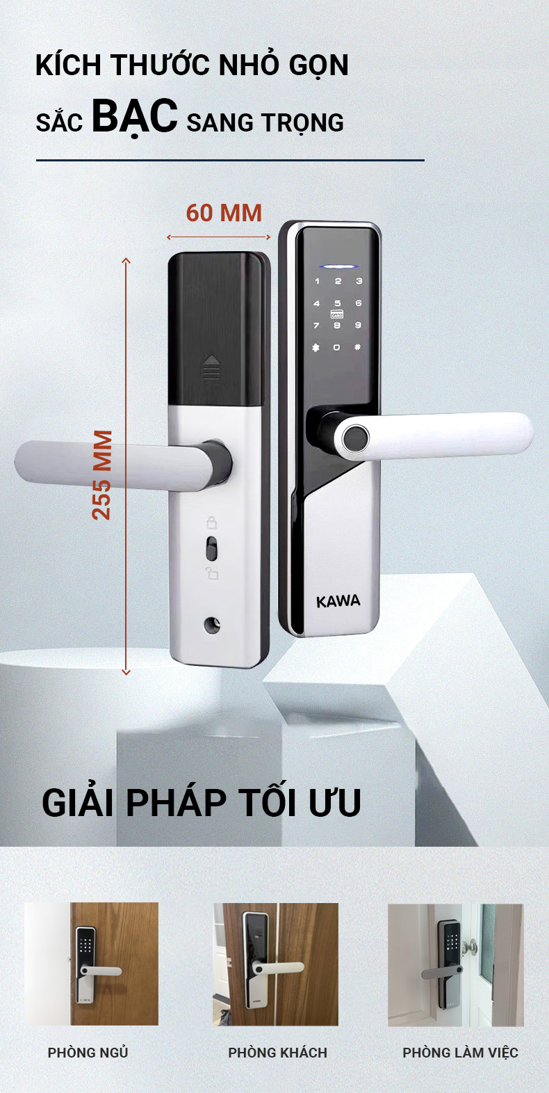Mẫu khóa vân tay Model K208 thuộc phân khúc bình dân thương hiệu khóa điện tử KAWA. Với kích thước nhỏ gọn, sản phẩm là sự lựa chọn tuyệt vời cho các mẫu cửa đố bé. Khóa có thể lắp đặt cho cửa chính, cửa phòng ngủ hay hay văn phòng làm việc.